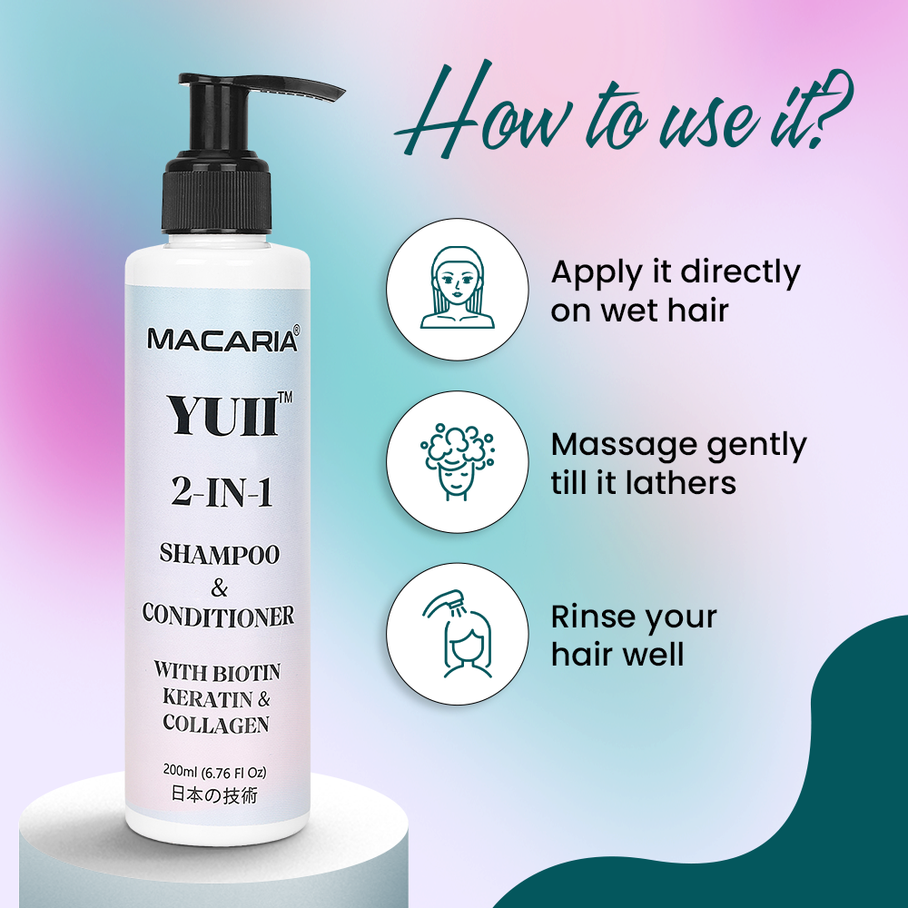 Transform your hair care routine with Yuii 2-in-1 Shampoo & Conditioner and unlock the secret to stronger, healthier hair. Take the first step towards revitalized locks today!