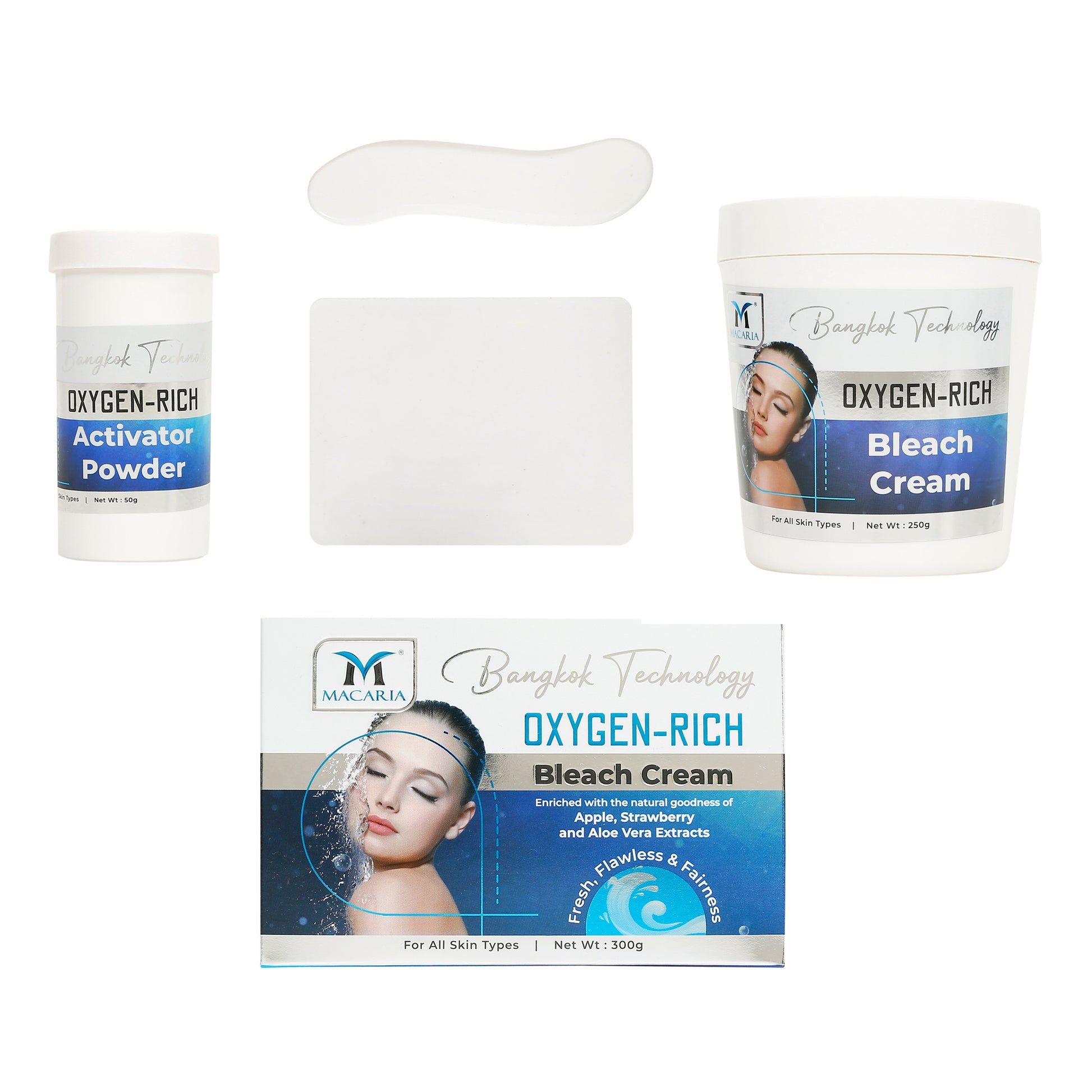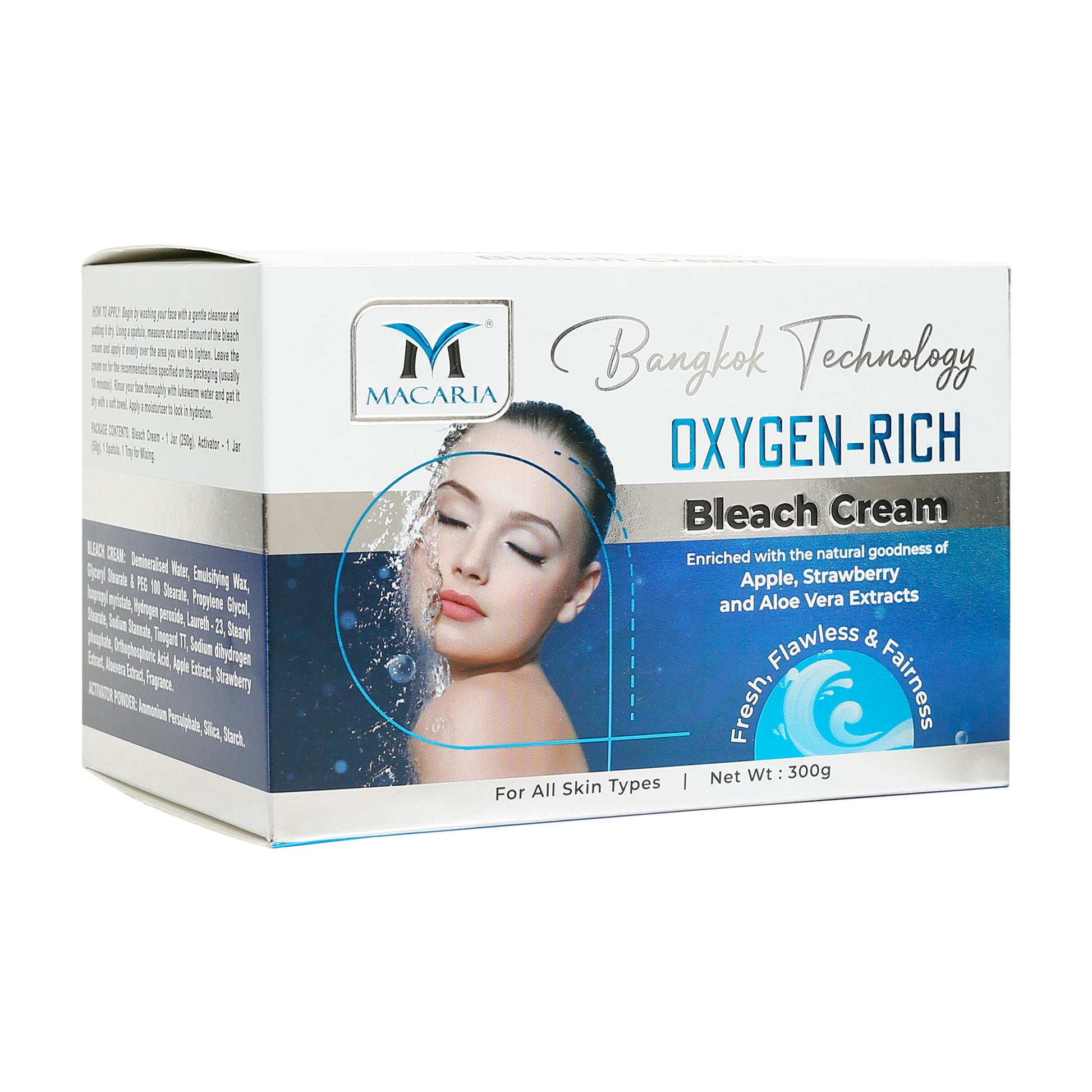 - Advanced Bangkok Technology: Macaria Oxygen Rich Bleach Cream is formulated with cutting-edge Advanced Bangkok Technology, ensuring instant hair bleaching and skin lightening with rich ingredients.